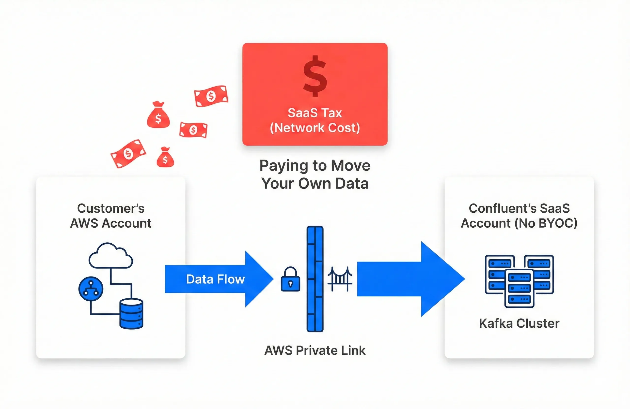 Bridging your account to Confluent's SaaS triggers high, recurring AWS Private Link fees for every byte transferred.